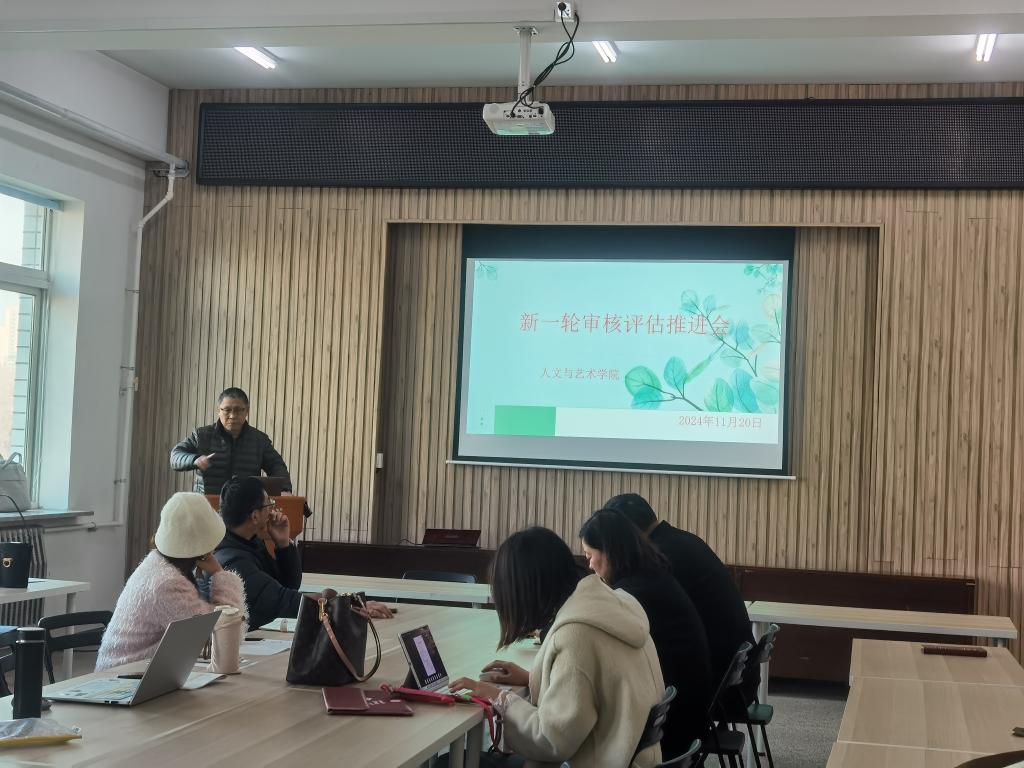 近日,人文与艺术学院举办新一轮审核评估推进会。会议对审核评估知识进行了培训,旨在帮助学院教职工深入理解评估政策,为即将到来的审核评估工作做好充分准备。会议由学院教学副院长王立强主持,各教研室主任及专业教师参加。