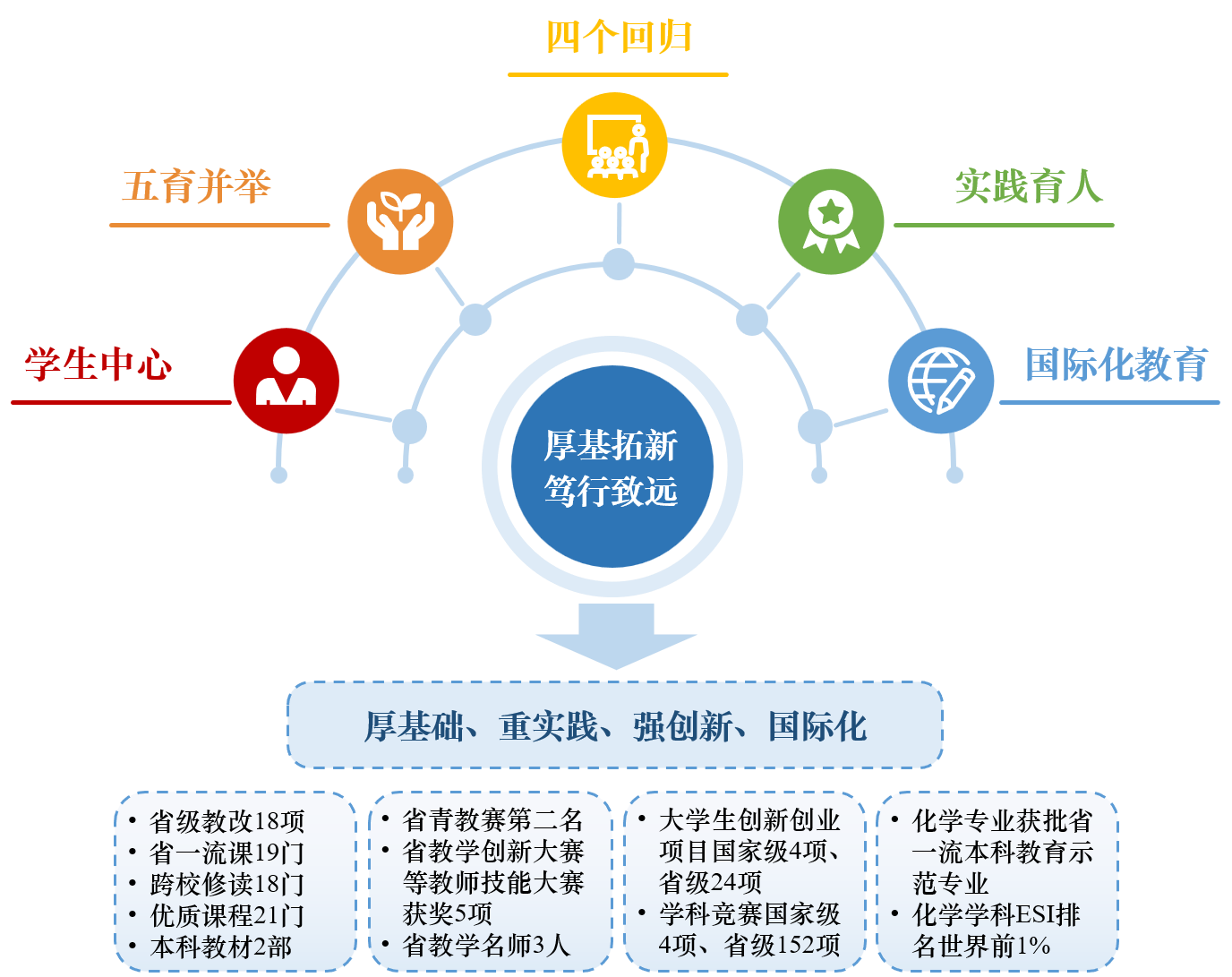 在教育教学改革进程中,学院秉持“学生中心、产出导向、持续改进”理念,积极优化课程体系、创新教学模式、改革考核方式、强化实践育人,成果丰硕。化学专业获批省级一流本科教育示范专业,化学学科ESI排名进入世界前1%。近三年,学院获批省级教学改革项目18项,获评省级一流课程19门,跨校修读课程18门,优质课程21门,公开出版本科生教材2部,连续两届获得全国青年教师技能大赛辽宁赛区第二名,获全国高校教师教学创新大赛等各类教师技能大赛辽宁省一等奖1项,二等奖1项,三等奖3项,省级教学名师3人。学生参与4项国家级、24项省级大学生创新创业训练计划项目,入选2项全国大学生创新创业年会项目,获4项国家级、152项省级竞赛奖项。毕业生升学率逐年上升,就业率稳定在94%以上,稳居学校前列。